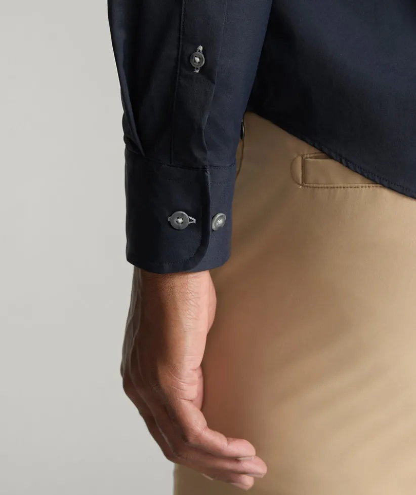 Busy day ahead? You need our wrinkle-fighting, sweat-wicking, Performance shirts with lots of stretch for next-level comfort. We make them in fits for all shapes and sizes from durable, high-quality nylon—not polyester, which can snag and pull. They feature a Stay-Put Collar, our signature sail at the hem, and, of course, the perfect untucked length so you can look sharp and feel comfortable all year long. Bonus: You can even wash and dry them at home. Wear this solid style under one of our Sport Coats to your next dressed-up event.