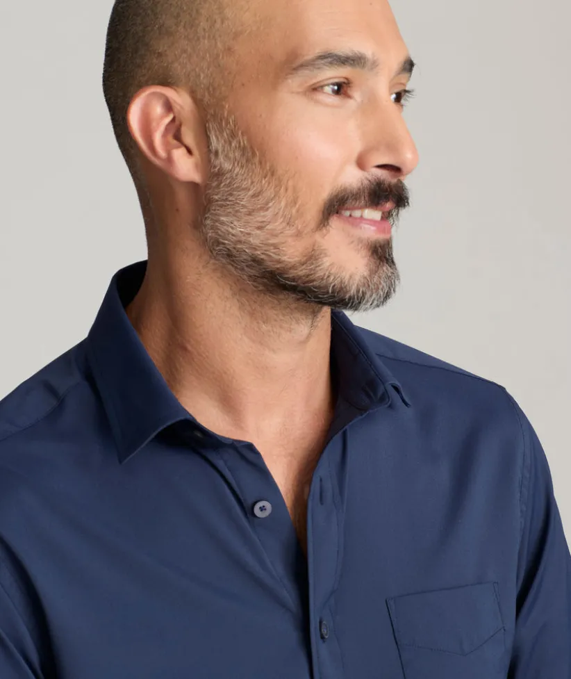 Busy day ahead? You need our wrinkle-fighting, sweat-wicking, Performance shirts with lots of stretch for next-level comfort. We make them in fits for all shapes and sizes from durable, high-quality nylon—not polyester, which can snag and pull. They feature a Stay-Put Collar, our signature sail at the hem, and, of course, the perfect untucked length so you can look sharp and feel comfortable all year long. Bonus: You can even wash and dry them at home. Wear this solid style under one of our Sport Coats to your next dressed-up event.
