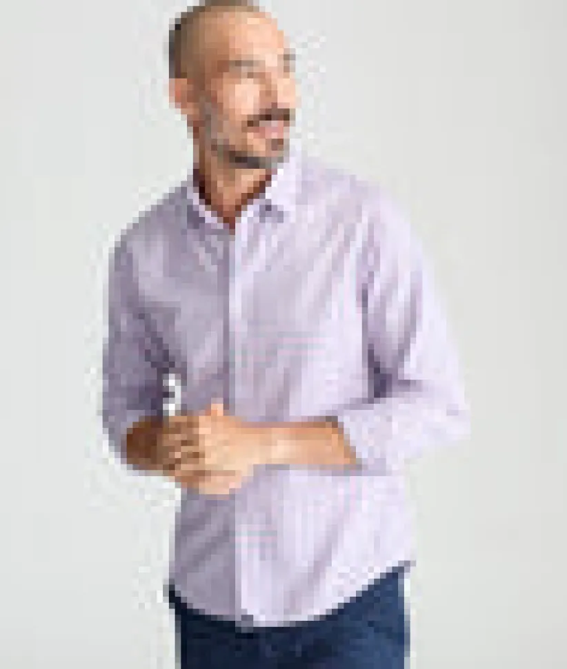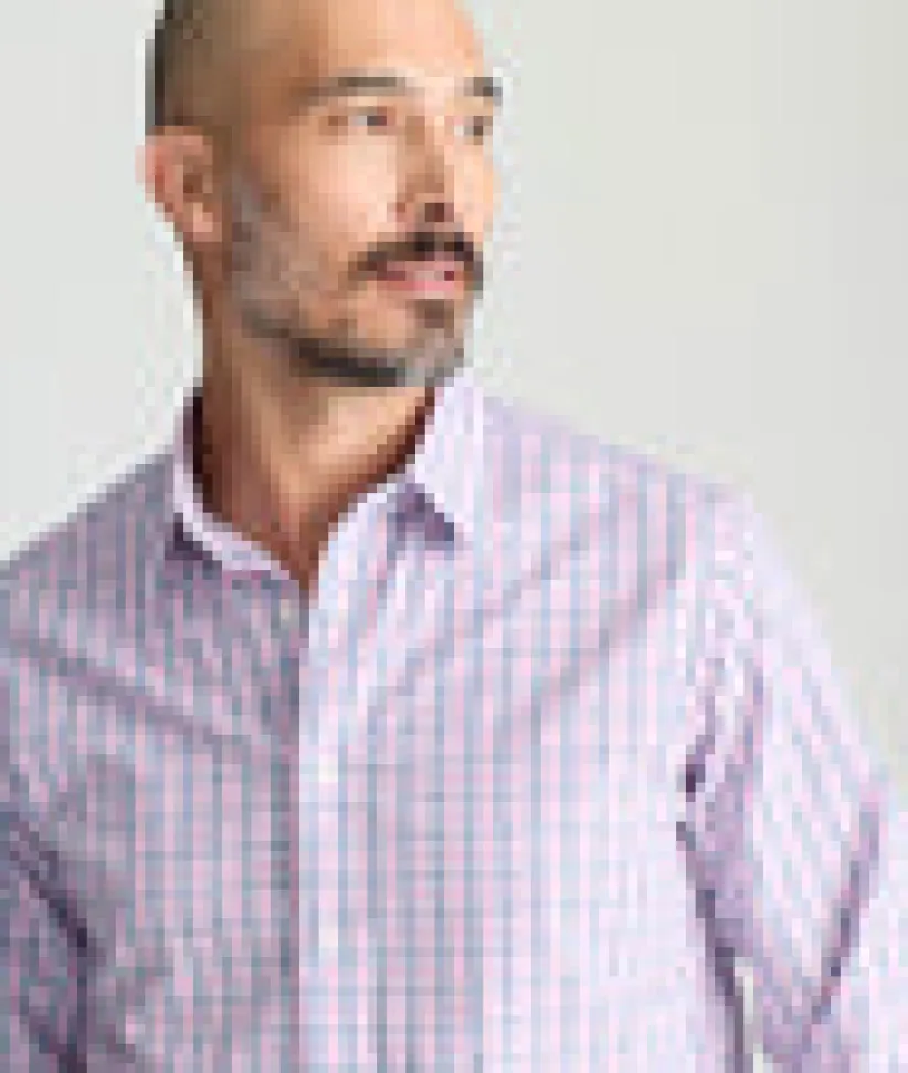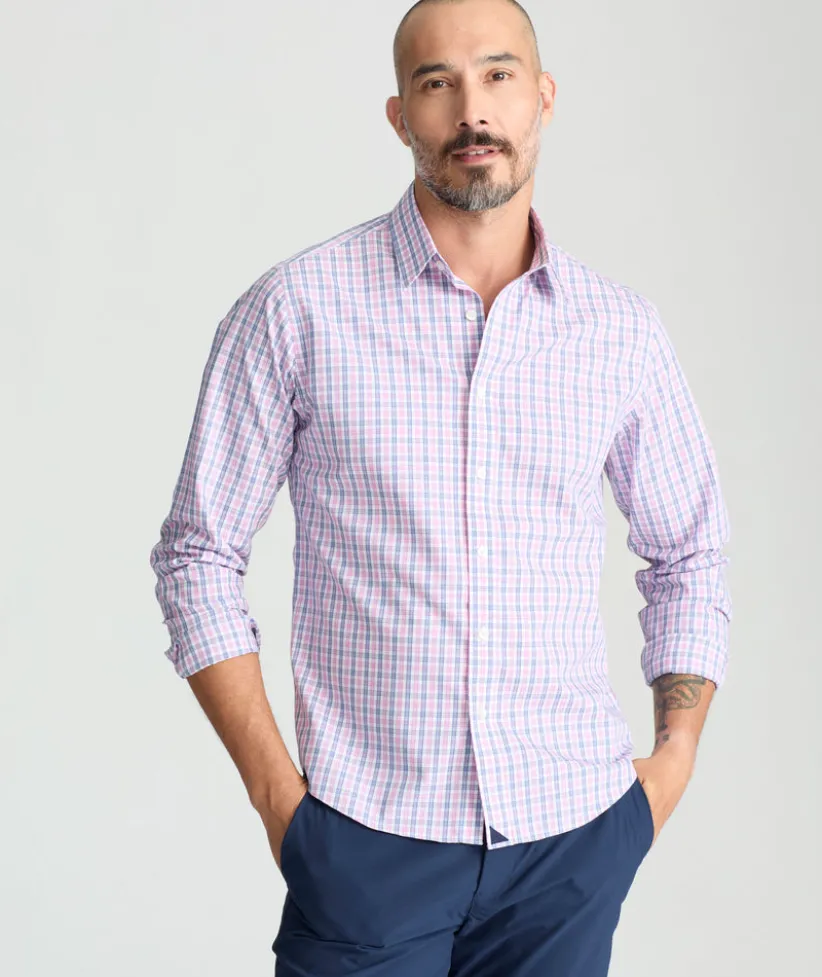 Meet your new go-to button-down. The Wrinkle-Free Dolcetto Shirt features a crisp blue-and-white check over a subtle pink base, all in 100% cotton that stays crease freeā straight from the dryer. The lightweight weave feels soft yet structured, making it perfect for all-day wear. A Stay-Put Collar keeps its shape, and the perfect untucked length adds style and comfort. Wear it on its own or layer it under a solid Sport Coat for an instantly elevated look.