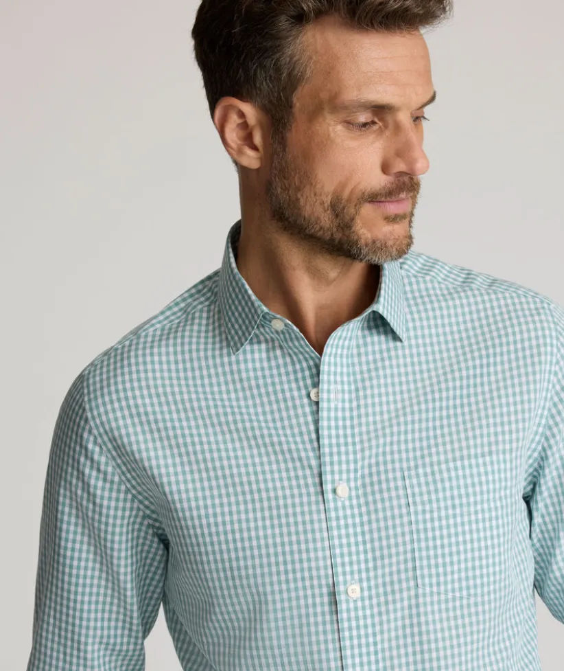 Ditch your iron and get out the door faster. This Wrinkle-Free button-down comes out of the dryer ready to wear with no wrinkles. It combines fine shirt details—a polished button-down collar, single-needle side seams, a structured cuff, and unbreakable buttons—with the comfort of an untucked shirt. The gingham pattern will work perfectly at any event, from a laid-back event to an evening dinner party. Pair it with our 5-Pocket Chino Pants or your favorite jeans for an easy look.