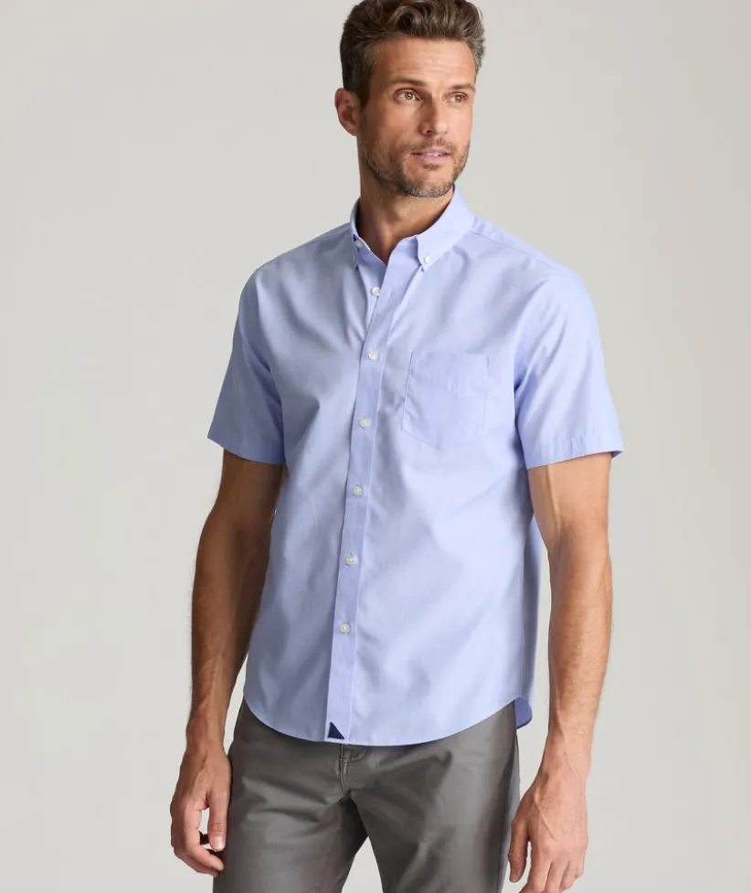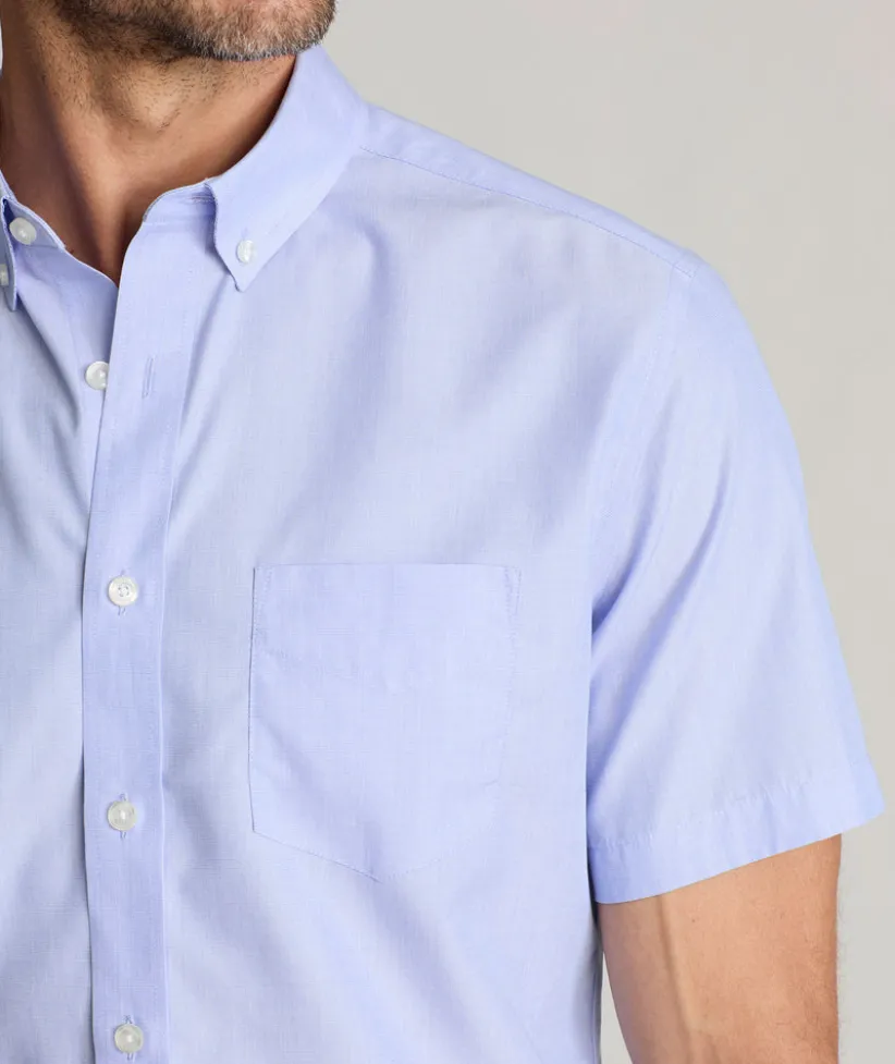 When the heat is on, you need a comfortable short-sleeve shirt to keep you feeling cool and looking sharp. The Wrinkle-Free Short-Sleeve Hillstowe Shirt is perfect for beating the heatāmade from 100% breathable cotton, this easy button-down features light blue coloring for a laid-back hot weather look. Plus, it has a convenient chest pocket and our signature sail logo in cool navy blue for a bit of added flair.