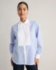 Getting dressed up is a cinch with our easy-to-wear Danielle Shirt. It features a subtle blue-and-white palette in a fine end-on-end weave, flattering silhouette, and button-up front. Even better, we added a polished rounded collar, chic contrast accents at the placket, cuffs, and sleeves, and a tuxedo bib so you can look great from work to the weekend and everywhere in between.