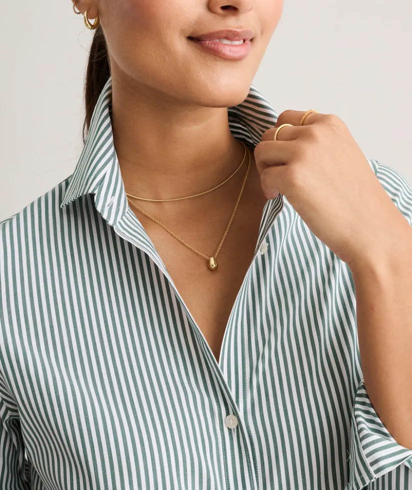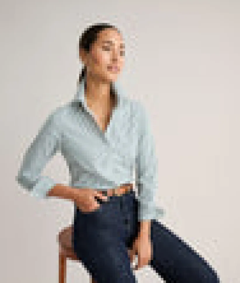 Wrinkle-resistant shirts are stylish essentials for every woman’s wardrobe. Our Bella Shirt’s stretch cotton fabric adds plenty of comfort, while slimming darts give it a precise fit. In flattering stripes, this style will make for an easy go-to this seasonāand our Perfect Placement Buttons ensure that your shirt always stays closed, with no awkward gaps.
