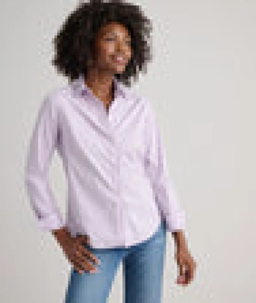 Wrinkle-resistant shirts are stylish essentials for every woman’s wardrobe. Our Bella Shirt’s stretch cotton fabric adds plenty of comfort, while slimming darts give it a precise fit. In a flattering solid color, this style will make for an easy go-to this season—and our Perfect Placement Buttons ensure that your shirt always stays closed, with no awkward gaps.