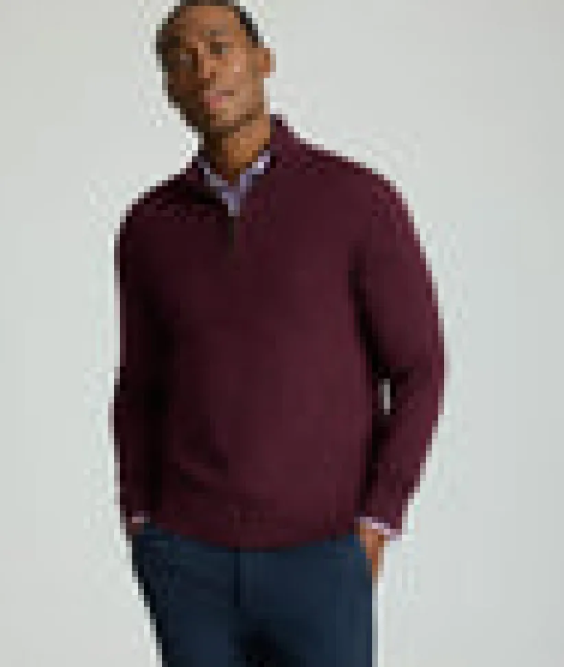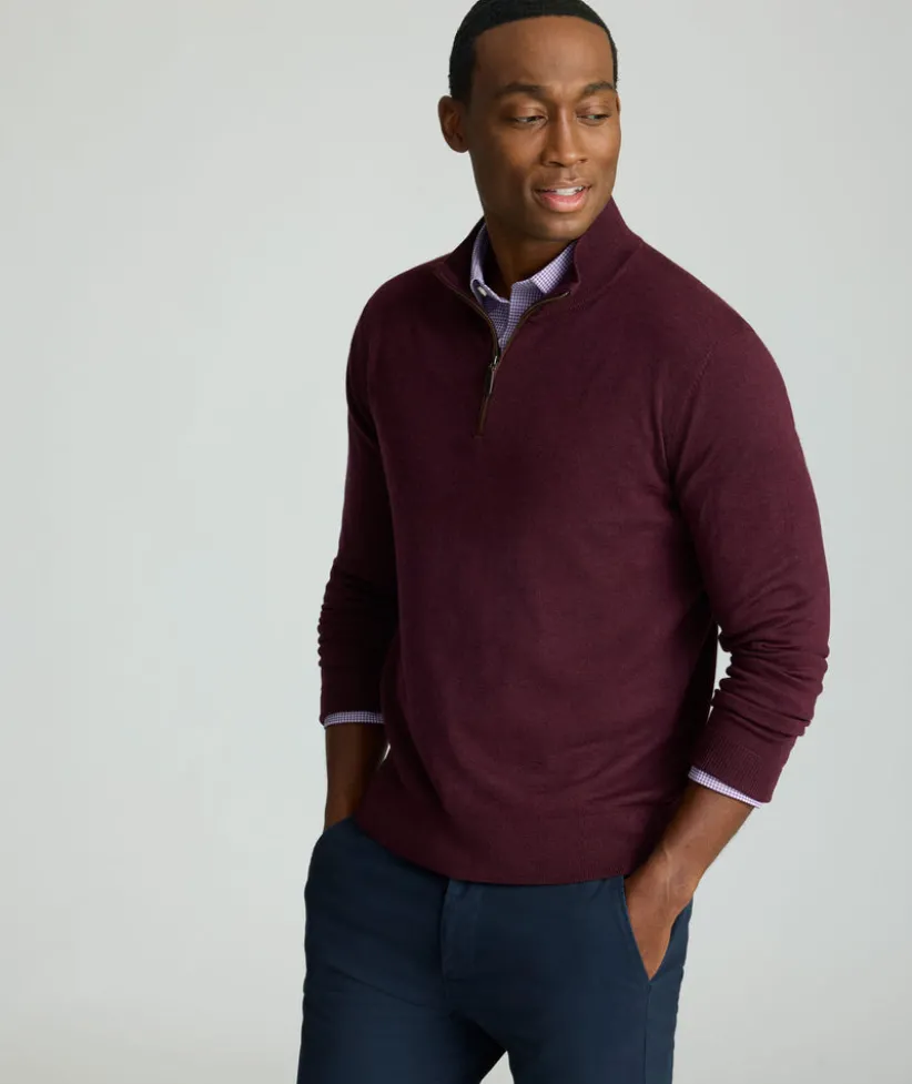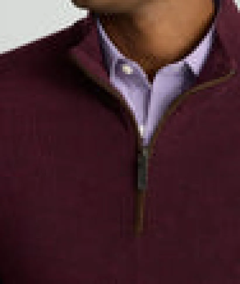 “When it’s chilly out, grab this easy pullover for added style and warmth. Made from 100% breathable wool, this quarter-zip sweater naturally regulates your body temperature so you won’t overheat. The mock collar, faux suede placket, easy zipper, and solid color give it an elevated style that still feels laid-back. Layer it over one of our perfect-fitting untucked button-downs with a pair of Classic Chino Pants for an effortless look this season.