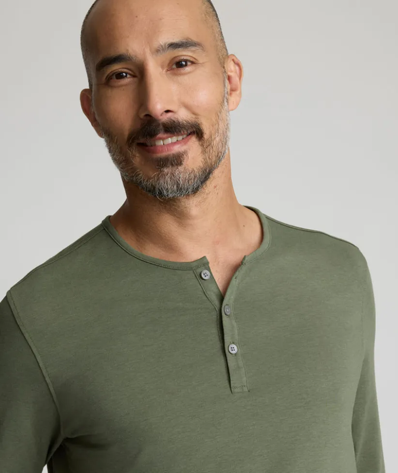 We made these EcoSoft Henleys using TENCEL™ lyocell, which are derived from natural raw material wood, for softness you can feel. The result is a more breathable feel and an ability to absorb pigment more easily for bold, eye-catching colors. Perfect for those slightly warmer days, the signature button-neck lets you customize your comfort to stay at that just-right temperature. Pair them with a lightweight wool vest and our comfortable Classic Chino Pants for a laid-back yet polished look this season.