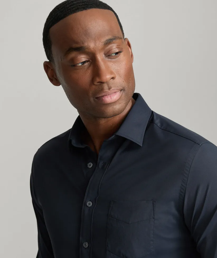Busy day ahead? You need our wrinkle-fighting, sweat-wicking, Performance shirts with lots of stretch for next-level comfort. We make them in fits for all shapes and sizes from durable, high-quality nylon—not polyester, which can snag and pull. They feature a Stay-Put Collar, our signature sail at the hem, and, of course, the perfect untucked length so you can look sharp and feel comfortable all year long. Bonus: You can even wash and dry them at home. Wear this solid style under one of our Sport Coats to your next dressed-up event.