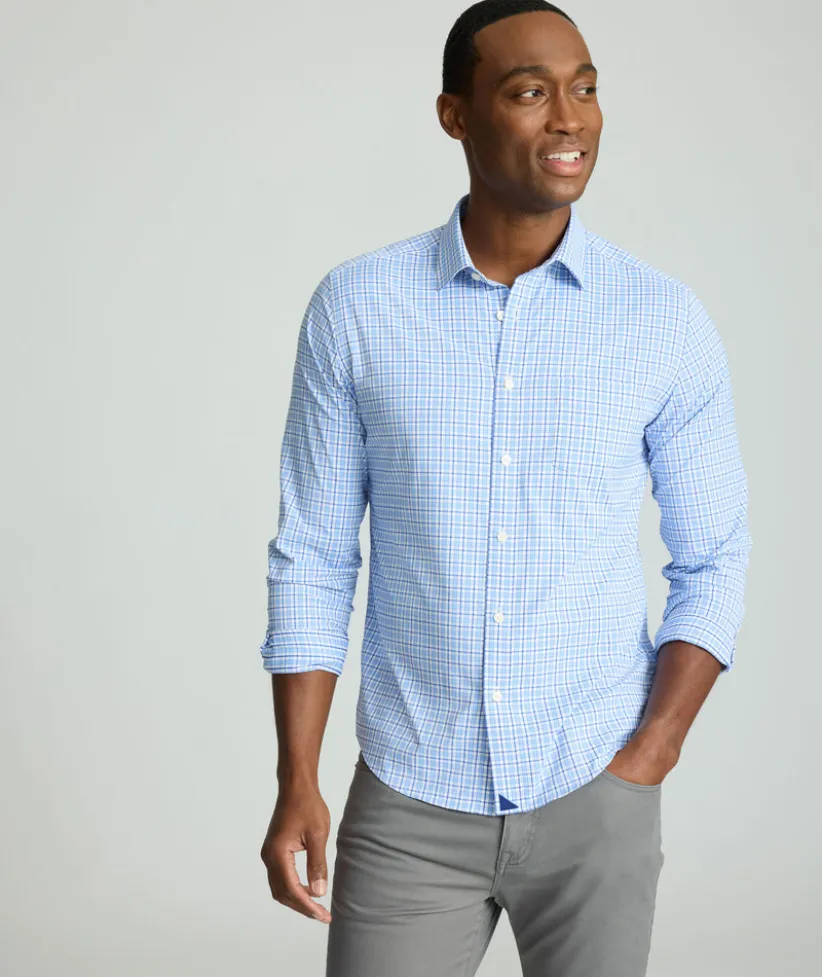 Our bestselling Performance shirts really do it all: resist wrinkles, wick moisture, and have plenty of stretch for all-day comfort. We make them in fits for all shapes and sizes from durable, high-quality nylon—not polyester, which can snag and pull. They feature a sharp spread collar, our signature sail at the hem, and, of course, the perfect untucked length so you can look great and feel comfortable no matter where your day takes you. Plus, they’re super easy to care for—just wash, dry, and wear! Try this everyday check that’s just right for the season. Pair it with our Classic Chino Pants for your go-to everyday look.
