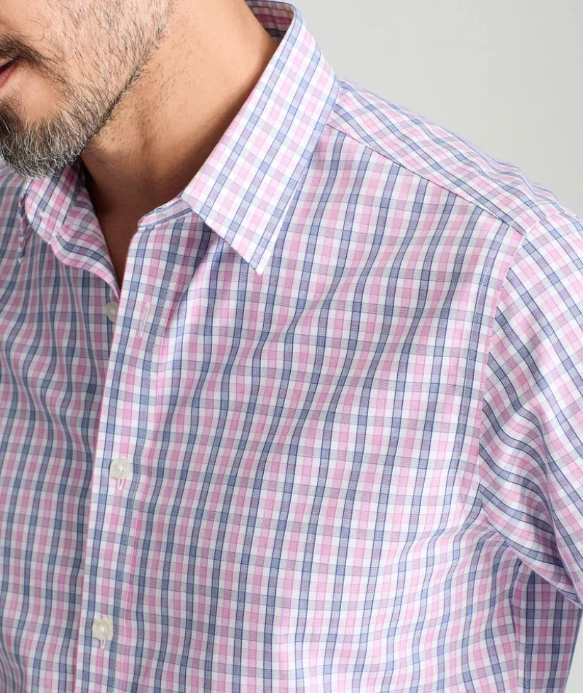Meet your new go-to button-down. The Wrinkle-Free Dolcetto Shirt features a crisp blue-and-white check over a subtle pink base, all in 100% cotton that stays crease freeā straight from the dryer. The lightweight weave feels soft yet structured, making it perfect for all-day wear. A Stay-Put Collar keeps its shape, and the perfect untucked length adds style and comfort. Wear it on its own or layer it under a solid Sport Coat for an instantly elevated look.
