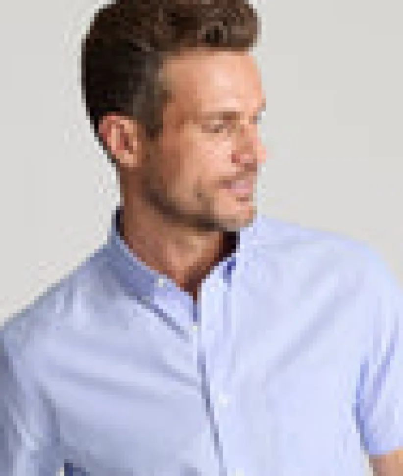 When the heat is on, you need a comfortable short-sleeve shirt to keep you feeling cool and looking sharp. The Wrinkle-Free Short-Sleeve Hillstowe Shirt is perfect for beating the heatāmade from 100% breathable cotton, this easy button-down features light blue coloring for a laid-back hot weather look. Plus, it has a convenient chest pocket and our signature sail logo in cool navy blue for a bit of added flair.