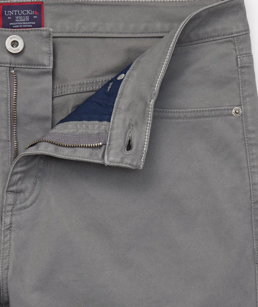 We combined the soft twill fabric of our Classic Chino Pants with the construction of your favorite jeans to create our sharp yet casual 5-Pocket Pants. These garment-dyed styles are made from supersoft cotton with just enough stretch to keep up with your busy life. They pair perfectly with any UNTUCKit shirt and feature an easy fifth pocket for handy storage. This style comes in two fits—slim and straight—and both are ideal for office days and evening happy hours.