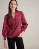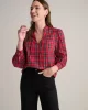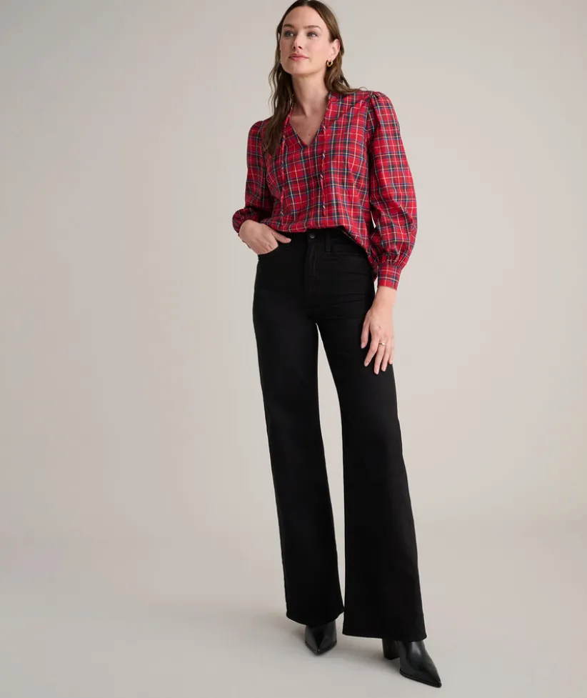 Looking to shake up your holiday look? Look no further. Our feminine Joy Shirt is the must-have style of the season. Featuring a classic tartan plaid pattern with metallic thread details for a hint of shine, this comfortable style is a great conversation starter for your next event. The popover split V-neck is timelessly chic, and the perfect-length shirttail hem can be worn untucked or tucked in.