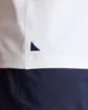 - Signature navy blue sail logo at the bottom right hem